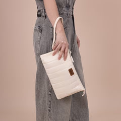 Quilted Puffer Wristlet Clutch/Writstlet-Cream