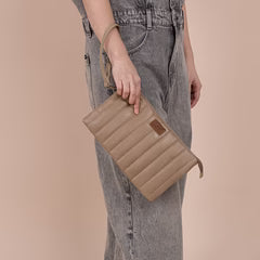 Quilted Puffer Wristlet Clutch/Writstlet-TAN