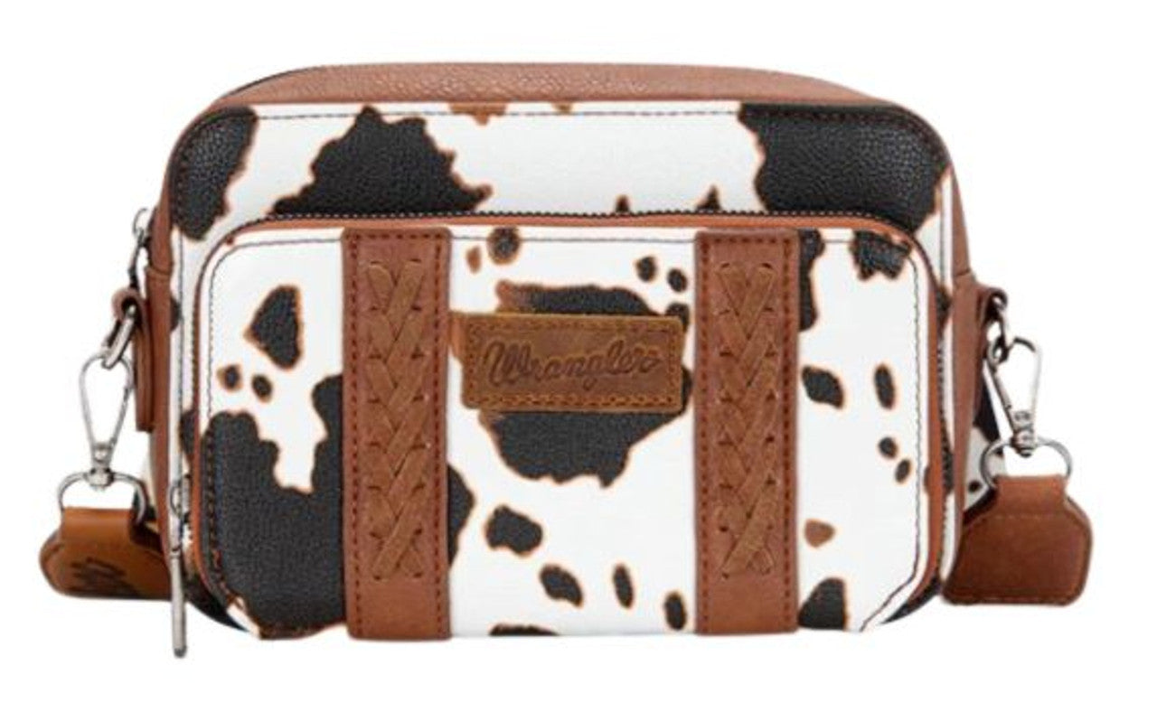 Wrangler Cow Print Crossbody Purse With Wallet Compartment -Brown