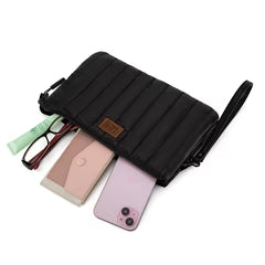 Quilted Puffer Wristlet Clutch/Writstlet-Black