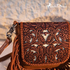 Montana West Genuine Leather Tooled Collection Fringe Crossbody