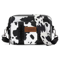 Wrangler Cow Print Crossbody Purse With Wallet Compartment -Black