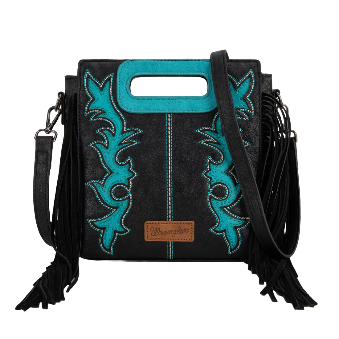 Wrangler Top Handle Boot Scroll Fringe Tote/Crossbody -Black