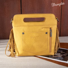 WG110-G2010 Wrangler Top Handle Embroidered Fringe Tote/Crossbody - Mustard