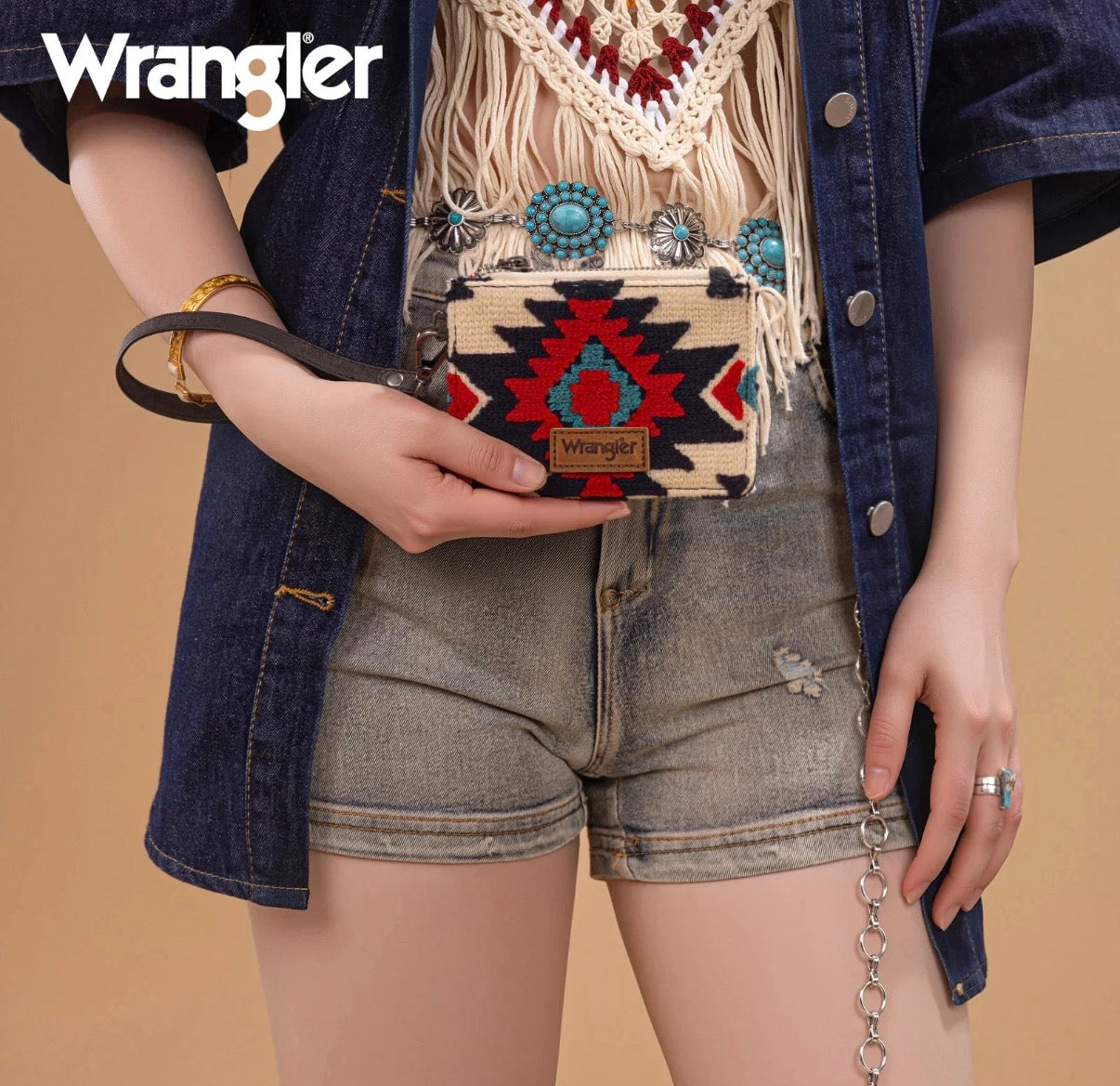 Wrangler Southwestern Print Wallet/Wristlet/Crossbody Bag - Jean